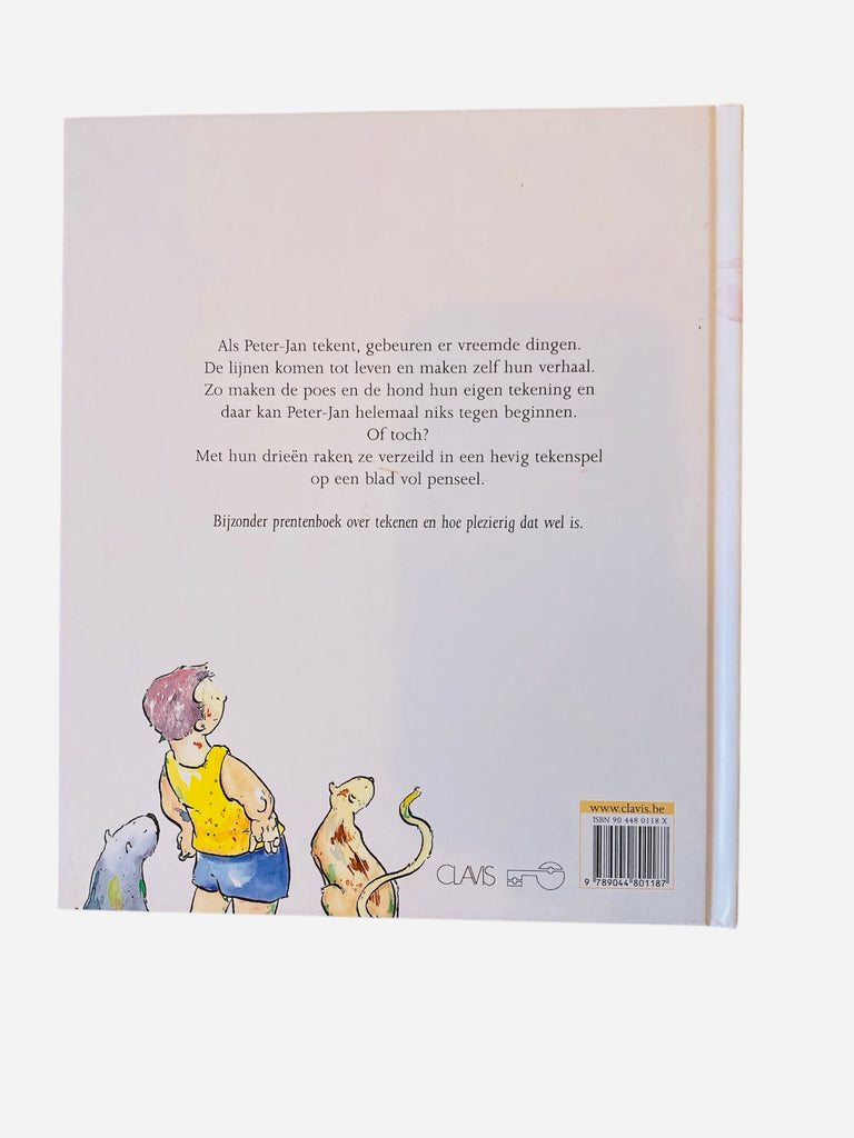 Als Peter-Jan tekent, gebeuren er vreemde dingen. De lijnen komen tot leven en maken zelf hun verhaal. Zo maken de poes en de hond hun eigen tekening en daar kan Peter-Jan helemaal niks tegen beginnen. Of toch? Met hun drieën raken ze verzeild in een hevig tekenspel op een blad vol penseel. Bijzonder prentenboek over tekenen en hoe plezierig dat wel is.