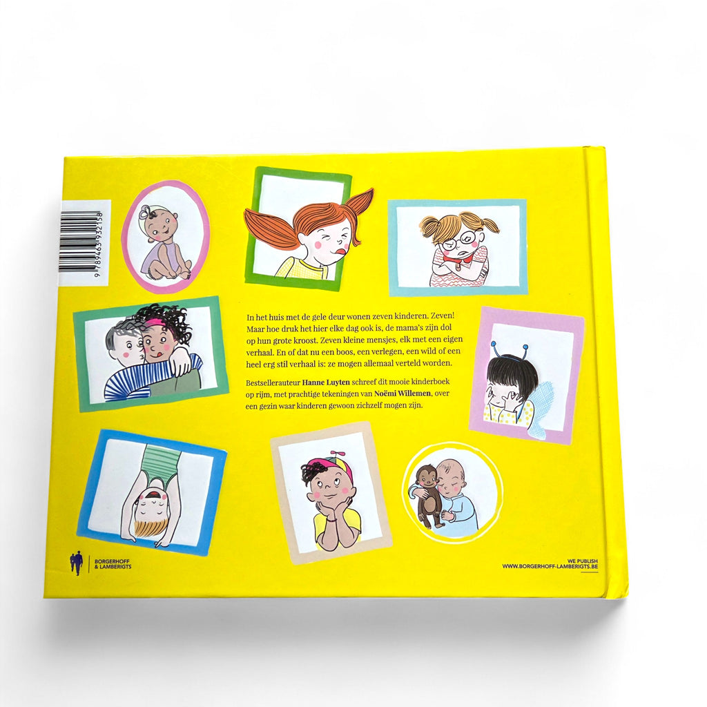 In het huis met de gele deur wonen zeven kinderen: Mies, Marcus, Melle, Mozes, Mia, Minke en Marie.