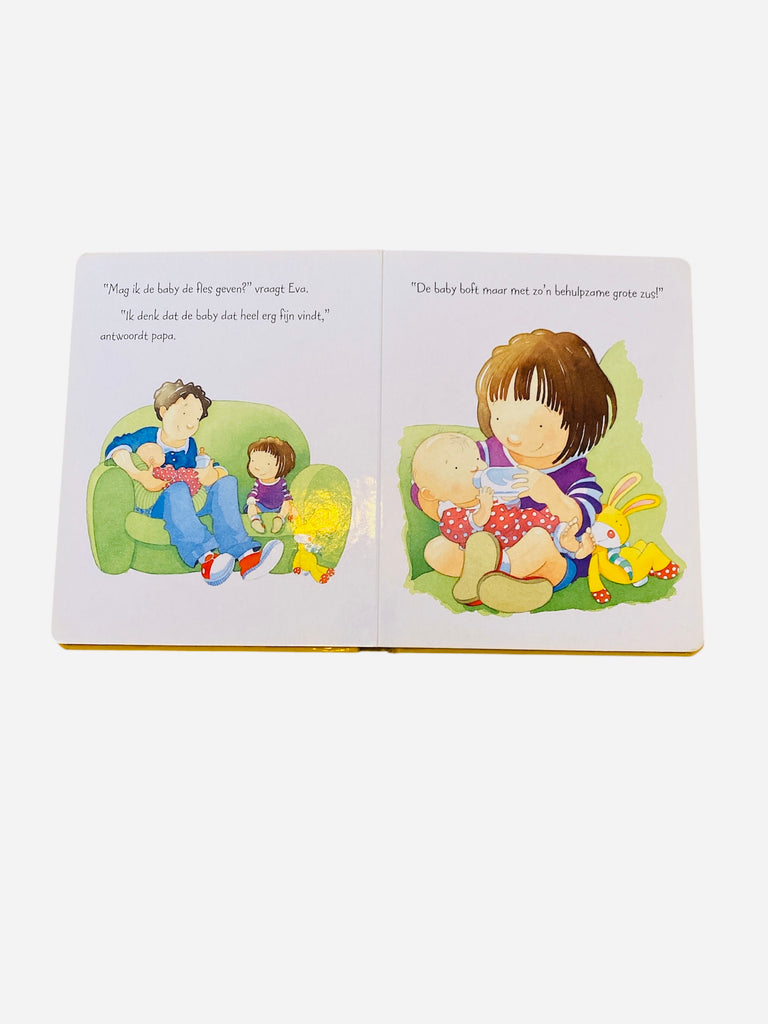Eva is door het dolle heen, want ze is nu een grote zus! Als de nieuwe baby alle aandacht krijgt, begint Eva te wensen dat ze zelf ook weer klein was. Maar dan mag ze helpen de baby's luier te verschonen, de baby de fles te geven en de wandelwagen te duwen - en krijgt ze ook nog een traktatie! Het is veel leuker een grote zus te zijn dan Eva had gedacht! Een leuk verhaal met prachtige illustraties voor alle grote zussen!