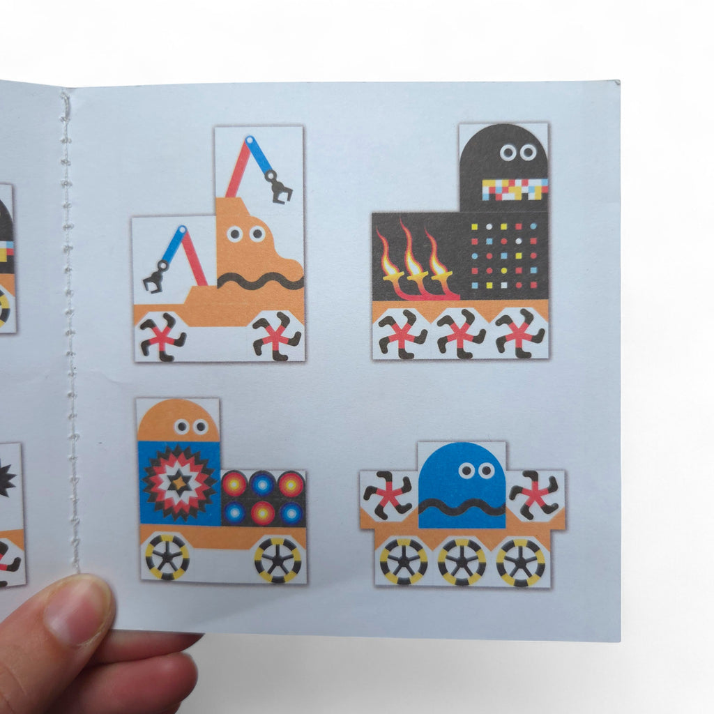Een animatiespel om zelf waanzinnige auto's, hijskranen en brandweerauto's te bedenken en te creëren met de verschillende onderdelen. Ontdek verrassende bewegende beelden door de gestreepte vellen te gebruiken.