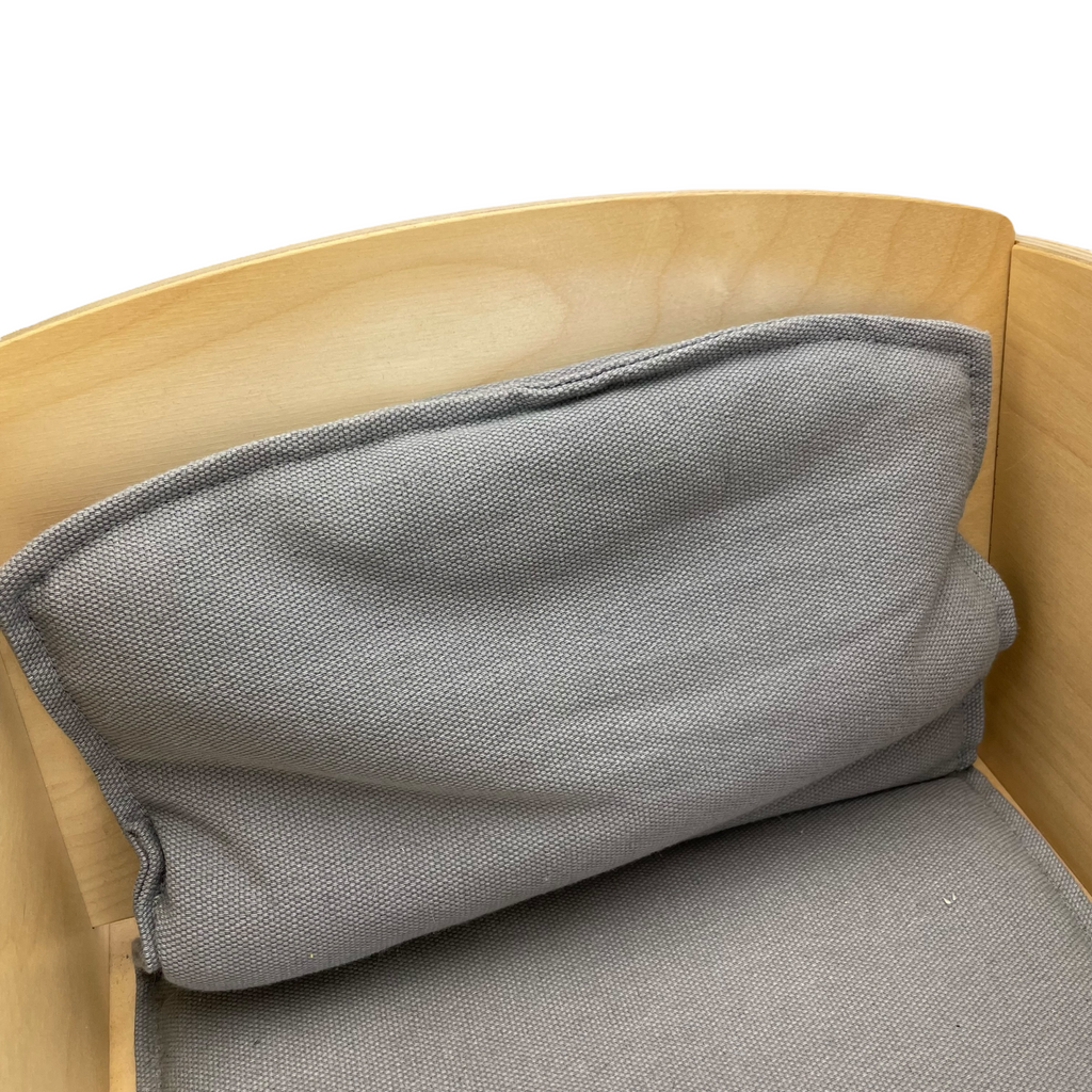Het hout is achter het kussentje een beetje verschenen, verder in topstaat.