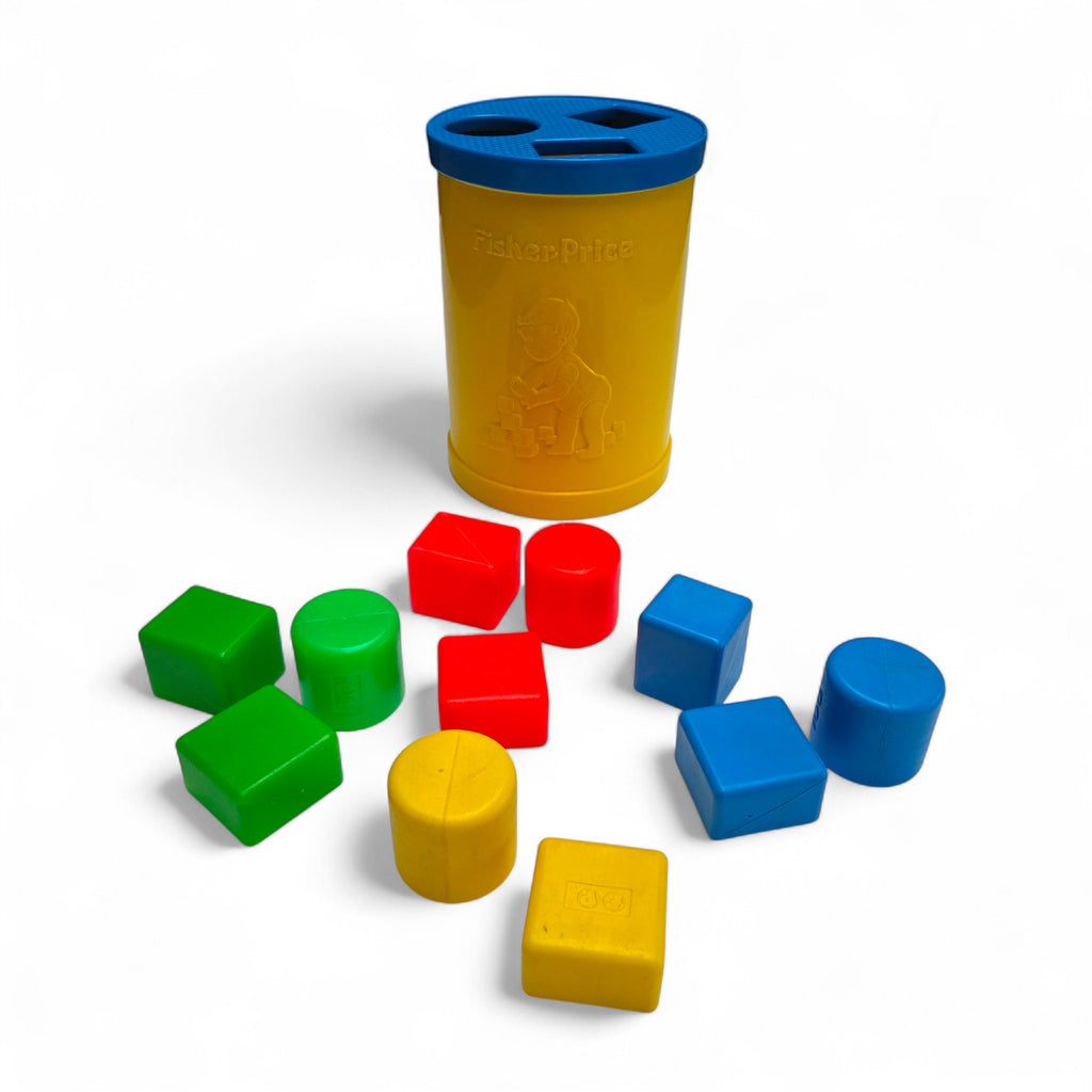 Retro vormenstoof van Fisher Price. Met leuke kleurrijke blokken.