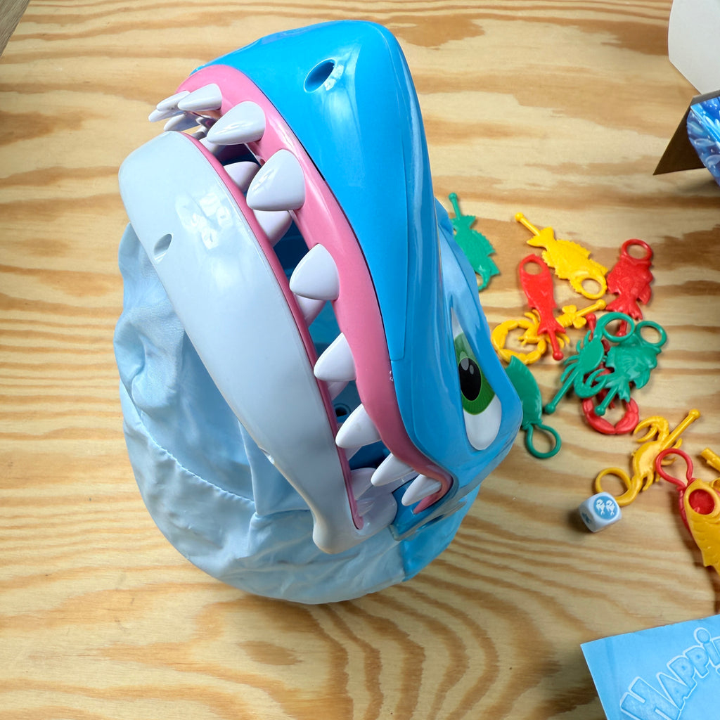 Kinderen zijn uren zoet met Happie Haai! Gooi de dobbelsteen om te weten hoeveel vissen je moet vangen. Haal de vissen dan uit het water met je hengel. Maar pas op… als de haai hapt, verlies je alles. De speler met de meeste vissen wint het spel.
