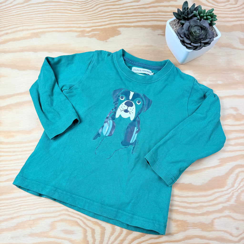 groene shirt lange mouwen hondje Filou en Friends maat 104
