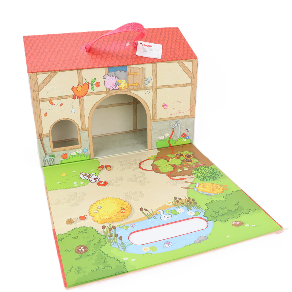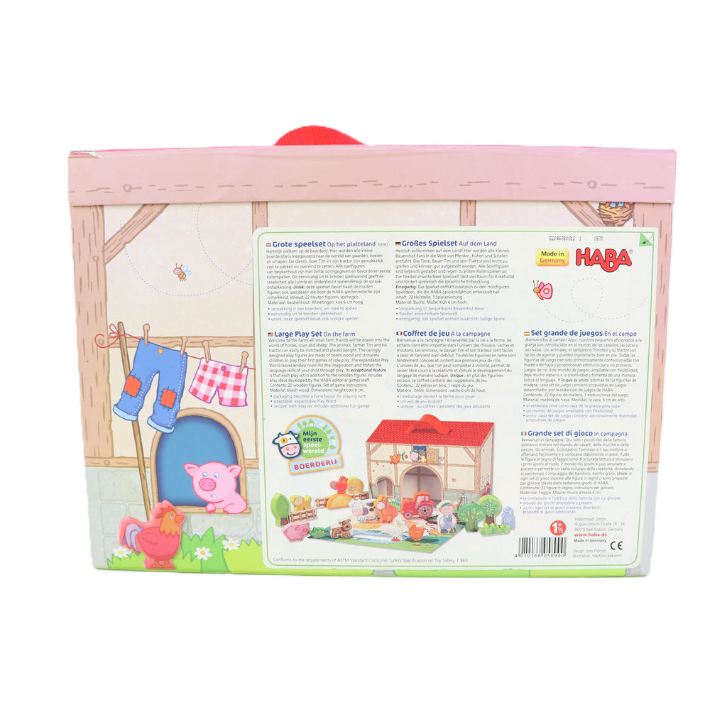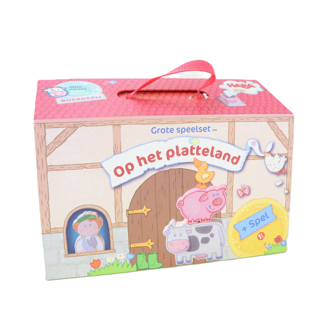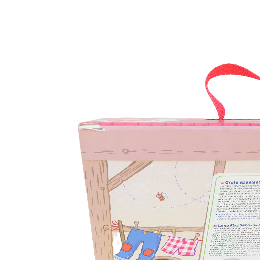 Allemaal welkom op de boerderij van boer Tim! De verpakking van de speelset is de boerderij zelf. Goed bekeken, toch? Zo kan je alles wat je nodig hebt makkelijk meenemen en ook proper opbergen.