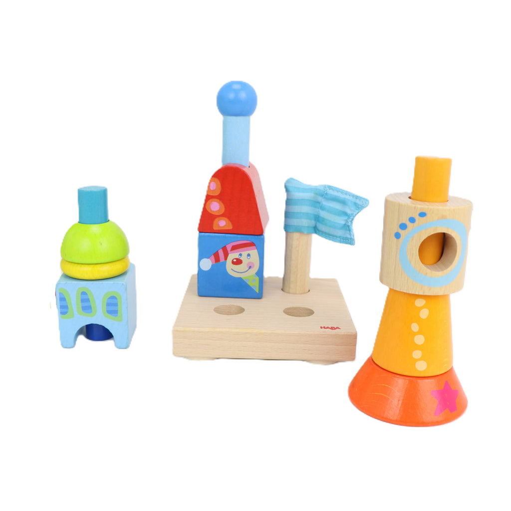 Voor de kleinste stapelkunstenaars: mijn huis, mijn toren, mijn vlaggetje - telkens weer kan het opsteekspel met de kleine torendwerg opnieuw in elkaar worden gezet!