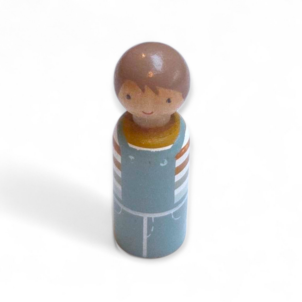 Er ontbreken 2 blokjes in deze set. Vervangen door 1 houten mannetje.