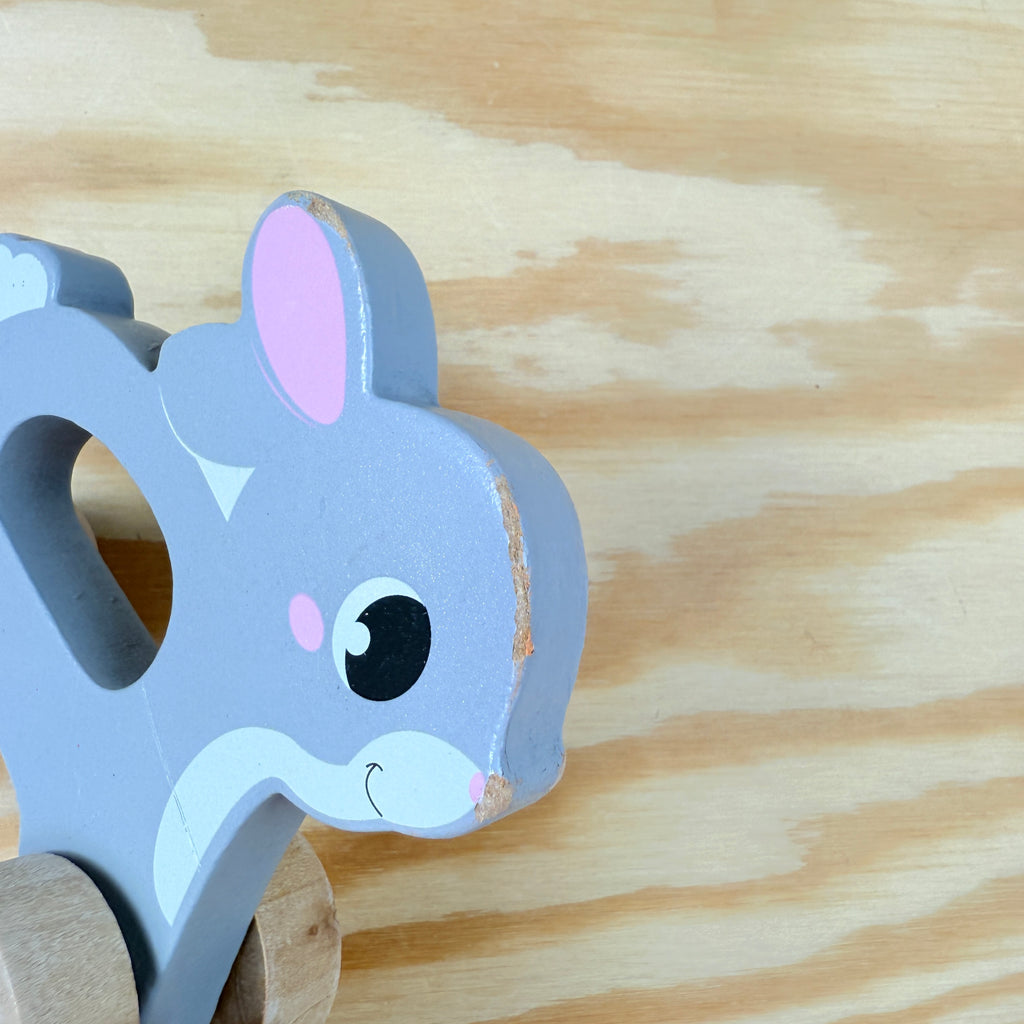houten konijn op wielen