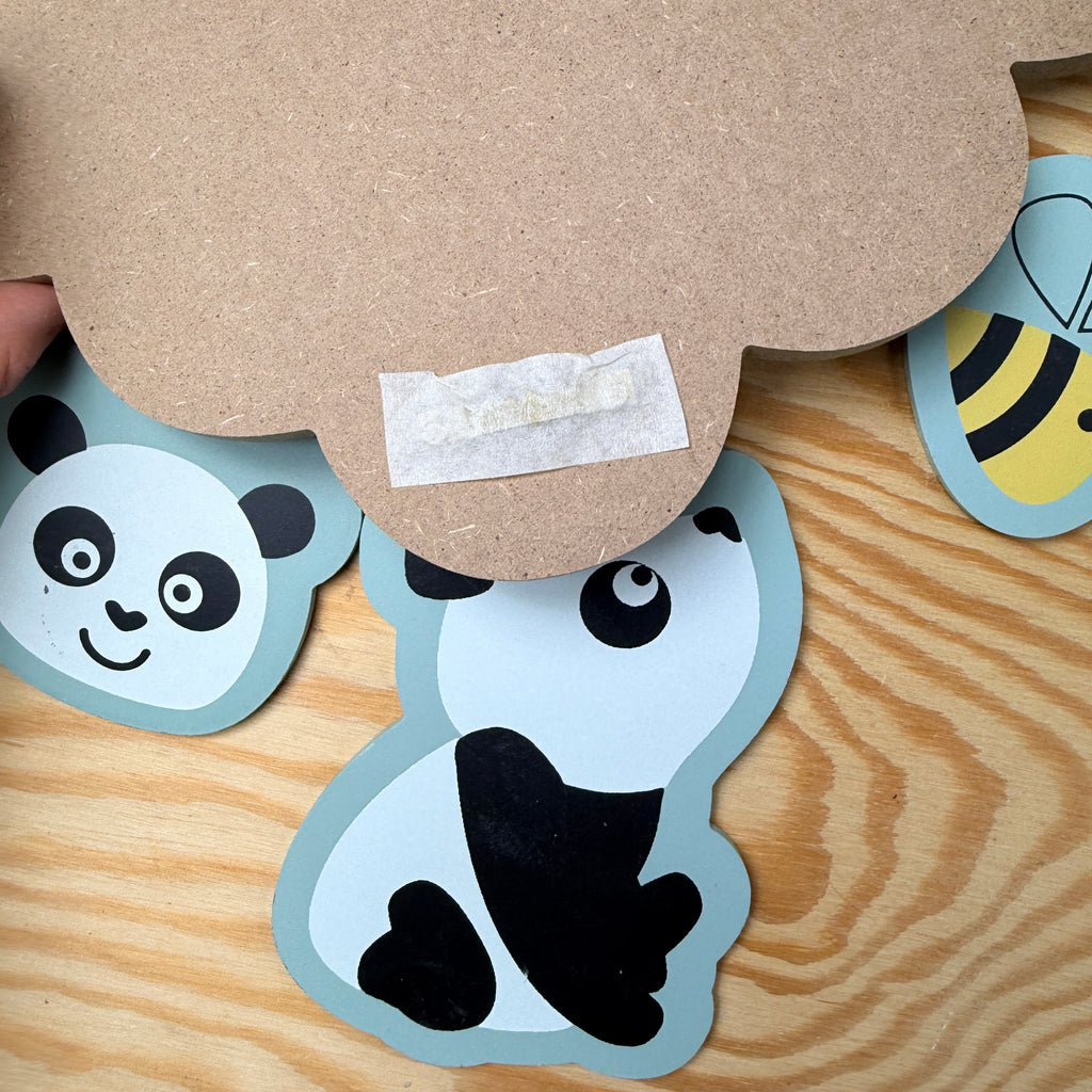 kinderkamerdecoratie panda: houten stoeltje en hanger
