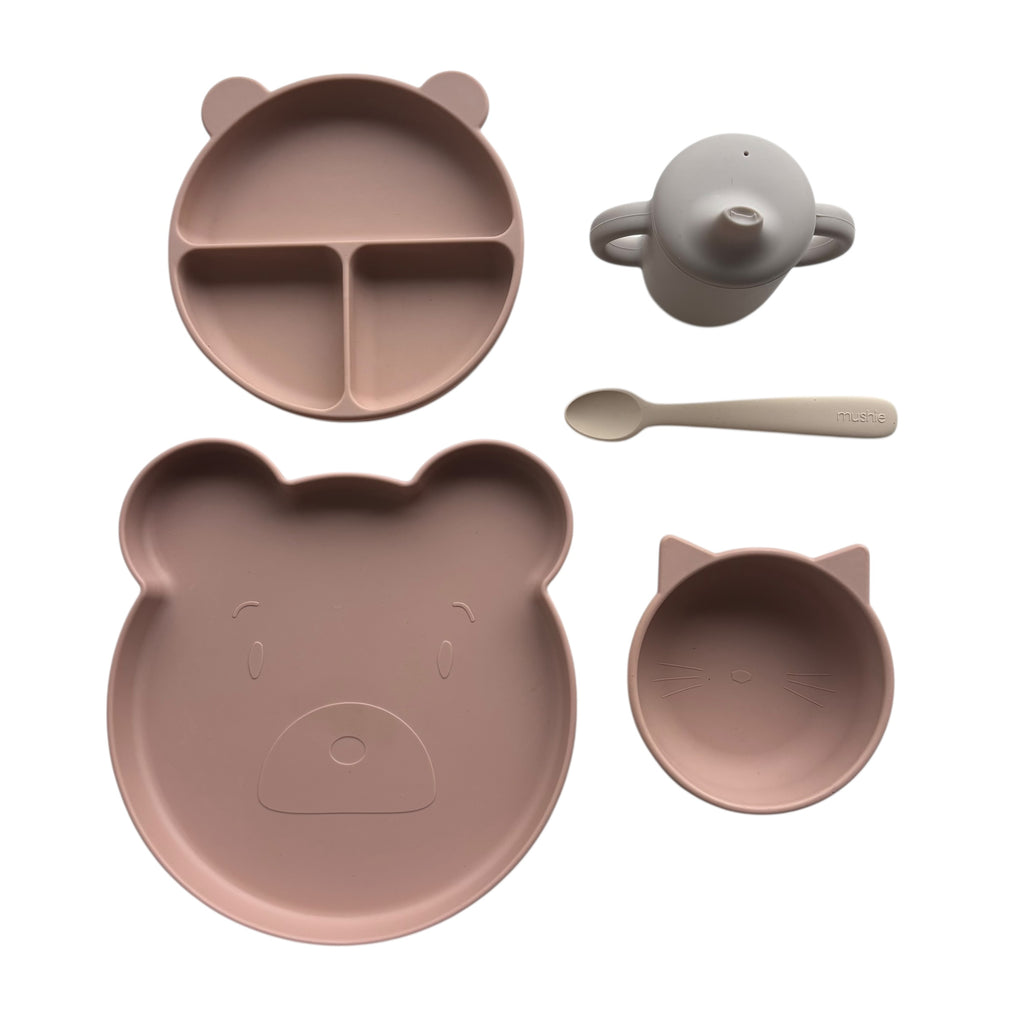 Liewood x Mushie siliconen eetset met drinkbeker roze