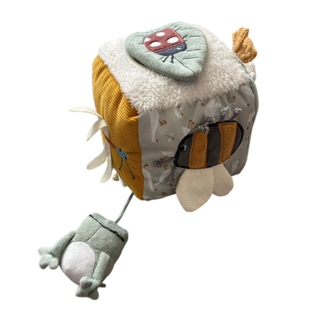 - De kubus kan vastgepakt en gedraaid worden. Perfect voor kleine babyhandjes!