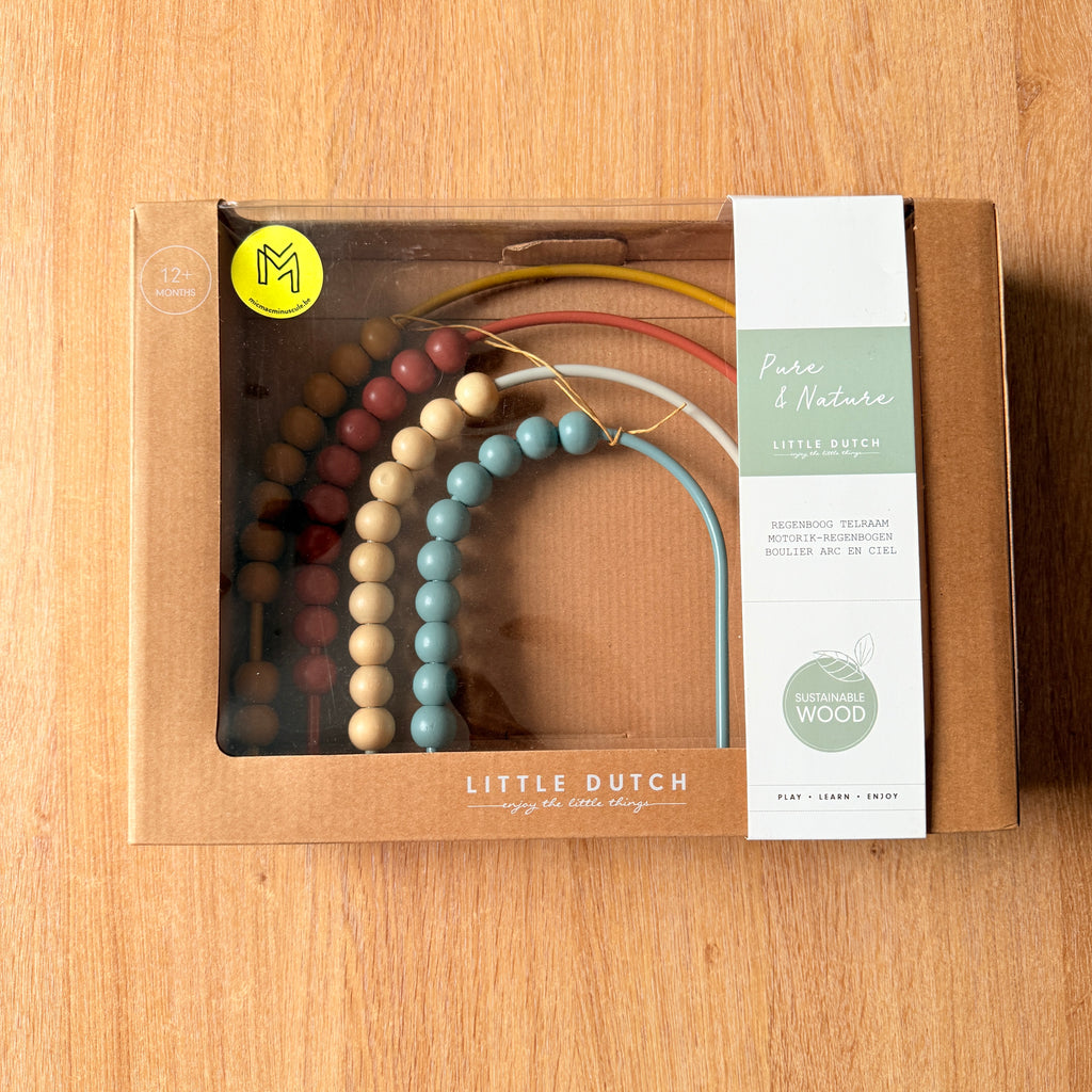 Tel van 1 tot 10, in alle kleuren van de regenboog! Met een telraam in de vorm van een regenboog wordt tellen nog leuker! Schuif de kleurrijke kralen van de ene kant naar de andere en ontdek de verschillende tinten roze, geel en groen. Terwijl je kindje spelenderwijs leert tellen, wordt ook de fijne motoriek getraind. En als ze wat ouder zijn kunnen kinderen het telraam gebruiken om te oefenen met rekenen. Een leuke manier om te leren terwijl ze spelen!