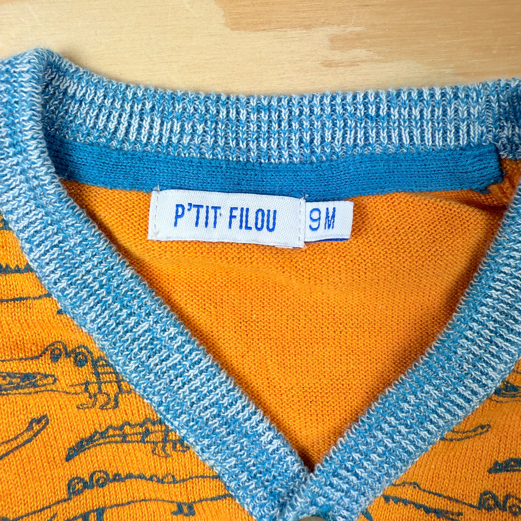 oranje gilet met krokodillen P'tit Filou maat 9m
