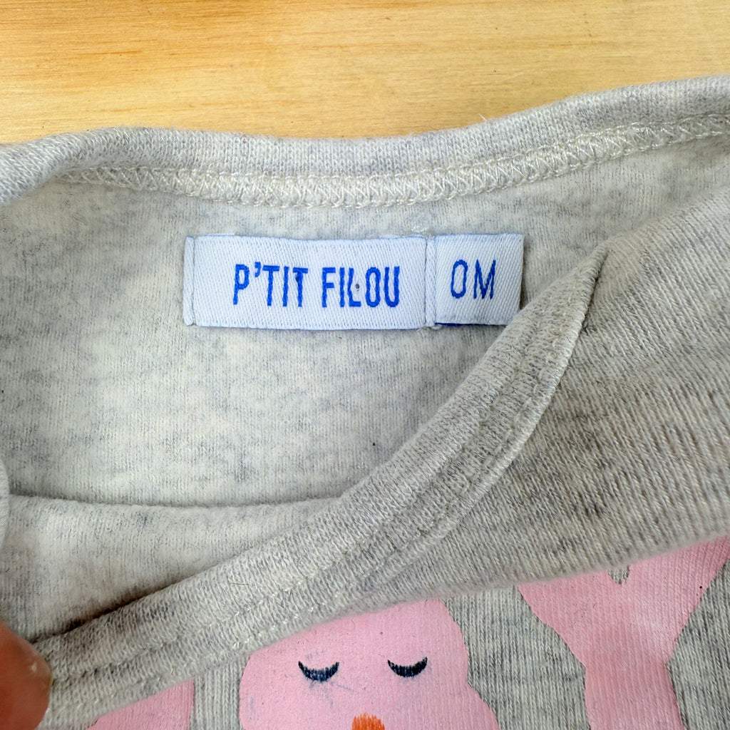 P'tit Filou: grijs shirt met lange mouwen: 0m
